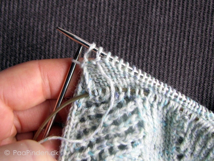 Gentag på samme vis de følgende to pinde til du har strikket alle omslag med:
